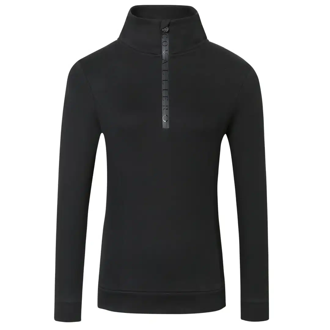 The Covalliero Ladies Sweatshirt: Black is an easy wearing sweater with half zip placket has a fleecy soft inner for optimum warmth and comfort when riding and working on the yard. The 4-way stretch allows for ease of movement and the natural cotton blend is naturally breathable.