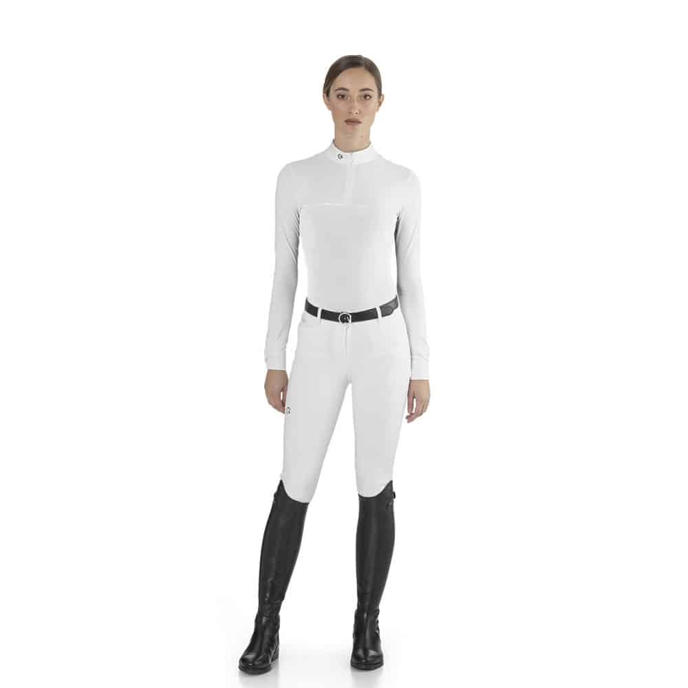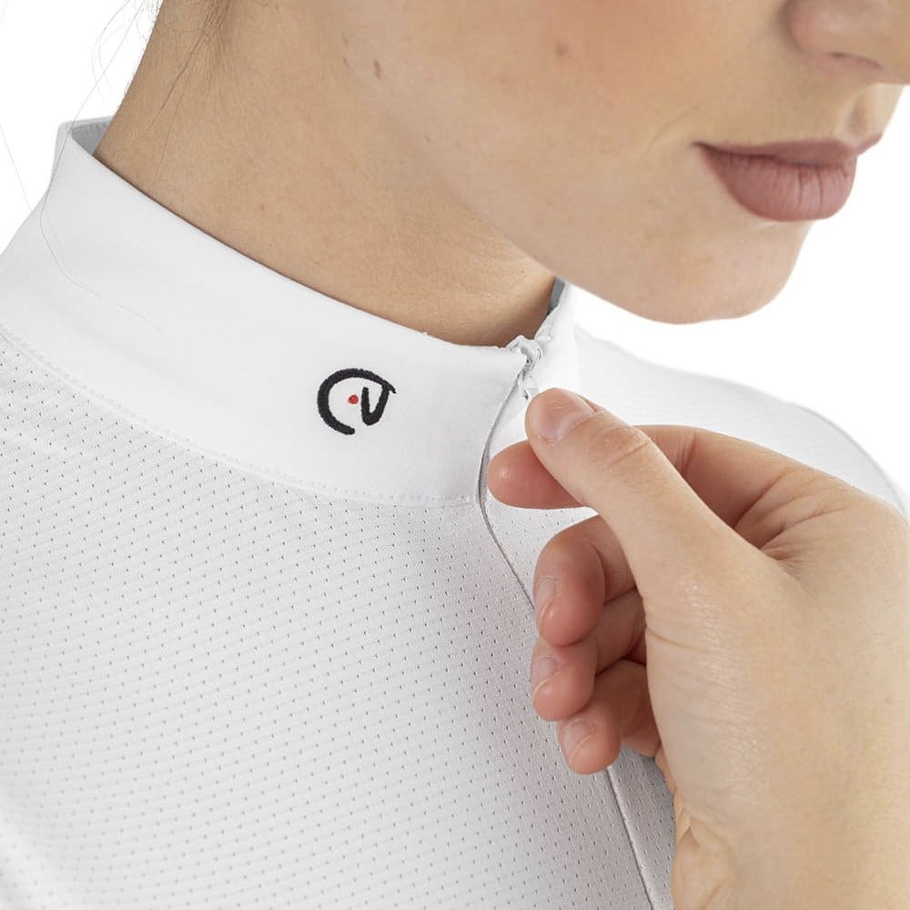 The Ego7 Ladies Mesh Long Sleeve Competition Shirt – White is a breathable mesh shirt, fashion zipped top, elegant style combined to the most advanced performance technology available revolutionary fabric, guarantees perfect fit, comfort, breathability, UV protection and maximum freedom of movement. The innovative properties, anti-wrinkle, moisture wicking and quick drying, keep EGO7 Shirt top from losing its shape, controls odours and makes it travel friendly, very easy or unnecessary to iron.
