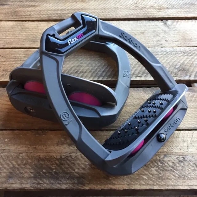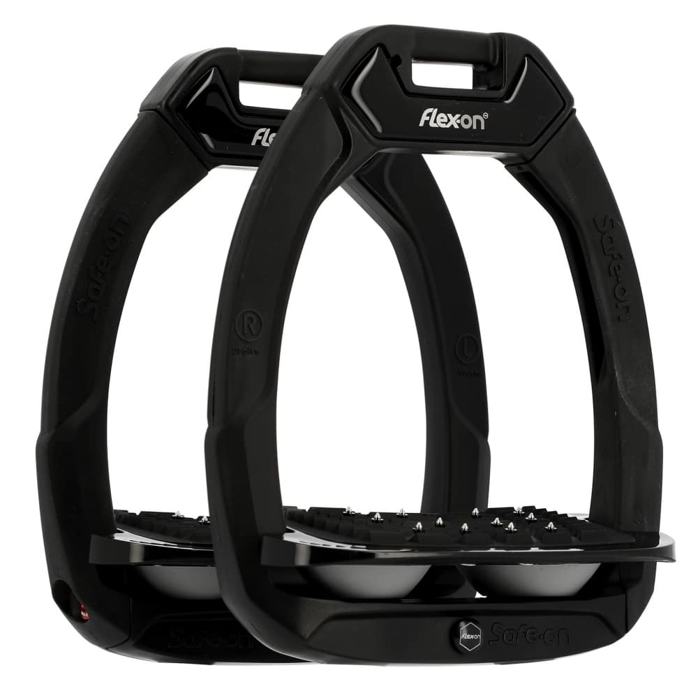 The Safe On stirrups from Flex-On combine comfort, performance and safety with their quick release safety arm and shock absorbing system and ergonomic design.