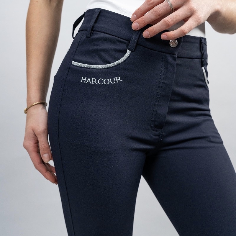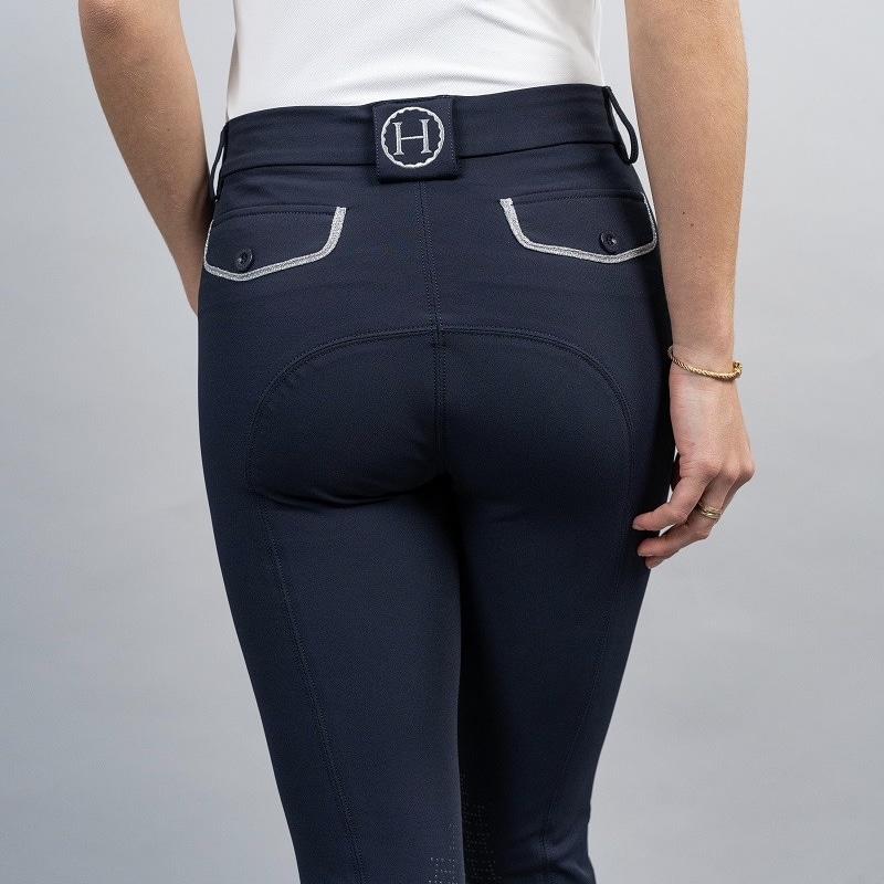 The Harcour Jaltika Ladies Breeches: Navy are a pair of close-fitting riding breeches from Harcour. The Jaltika are our best selling breeches on the shelf which come with a unique silicone grip system technology on the knees along with the water-repellent, full stretch material making these breeches a must have in every riders wardrobe!