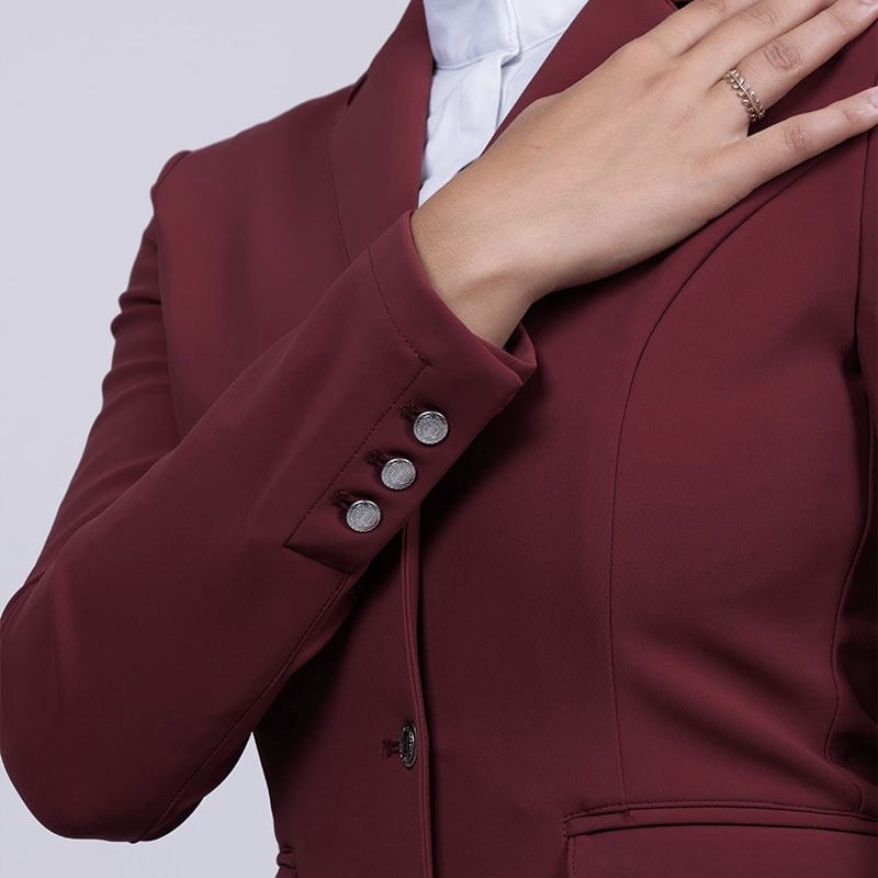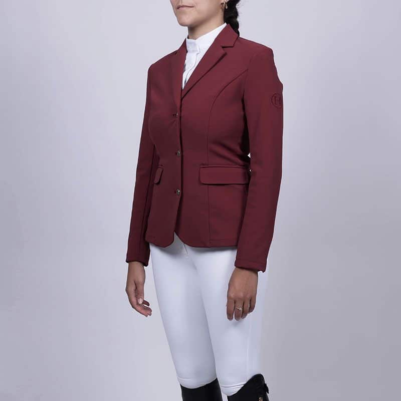 The Harcour Jismy Ladies Competition Jacket: Burgundy is Harcour’s most populare show jacket this season! The Jismy is made from our technical “rider stretch” fabric meaning this jacket can be worn with air jackets as well as being super comfortable to ride in.