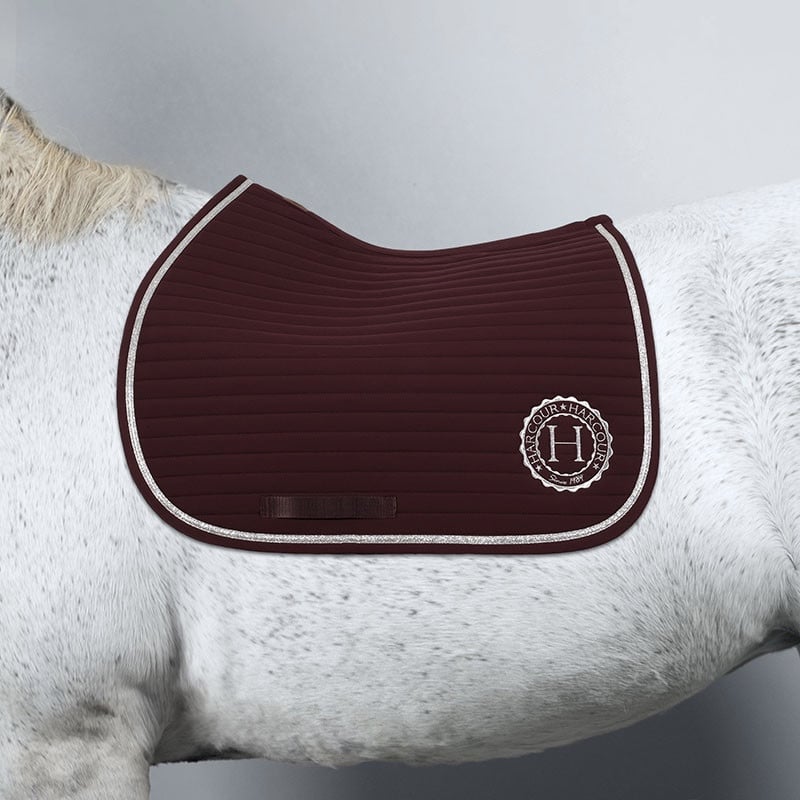 The Harcour Karembar Jump Saddle Pad: Aubergine is an embossed cotton saddle pad offering better absorption and optimum breathability. The quilting panels adapts to all types of horses and the elegant styling means the pad can be used for everyday riding or competitions. The design of the Karembar saddle pad offers a solid cut and shape meaning it remains well in place under saddle.