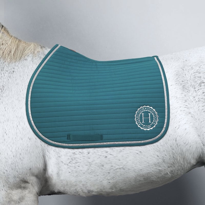 The Harcour Karembar Jump Saddle Pad: Duck Blue is an embossed cotton saddle pad offering better absorption and optimum breathability. The quilting panels adapts to all types of horses and the elegant styling means the pad can be used for everyday riding or competitions. The design of the Karembar saddle pad offers a solid cut and shape meaning it remains well in place under saddle.