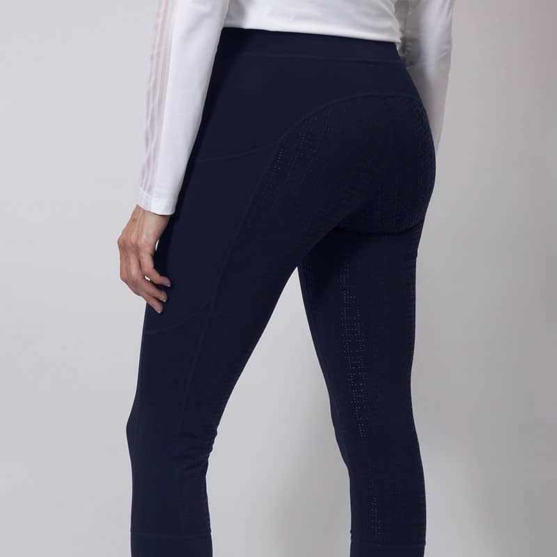 The Harcour Louna Full Seat Leggings: Navy are a pair of high quality full silicone seat leggings from Harcour. The Louna close-fit riding legging has been designed with the rider in mind using a unique technical thin fabric for a greater freedom of movement in the saddle.