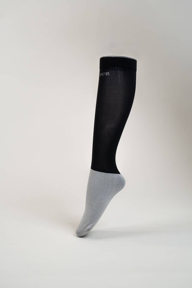The Harcour Vaya Long Riding Socks (2 Pack) – Blue are a pair of unisex long riding socks that come in a convenient twin pack. These long competition riding socks are made from a thin, stretchy, breathable fabric keeping you comfortable in the saddle and also benefit from a reinforced cotton heel. Featuring a “Harcour” logo to the side.