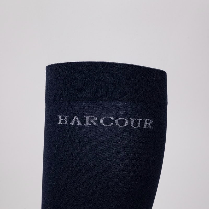 The Harcour Vaya Long Riding Socks (2 Pack) – Navy are a pair of unisex long riding socks that come in a convenient twin pack. These long competition riding socks are made from a thin, stretchy, breathable fabric keeping you comfortable in the saddle and also benefit from a reinforced cotton heel. Featuring a “Harcour” logo to the side.