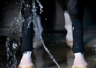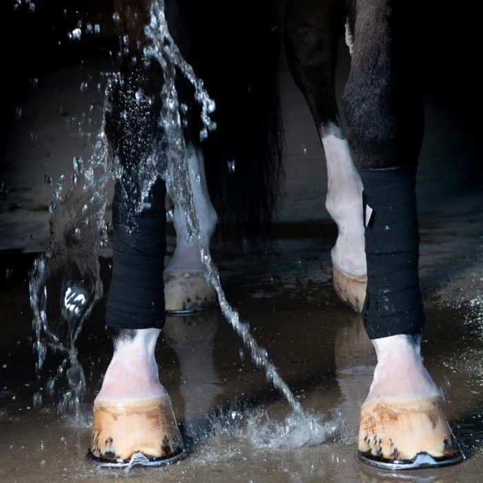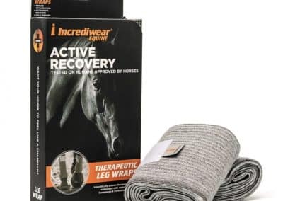Incrediwear is a germanium/carbon-embedded fiber that is activated when exposed to body heat, with negative ion release triggering a mechanical increase in blood flow to the area combined with increased lymphatic drainage. When applied dry, the product will increase blood flow and promote lymphatic drainage around your horse’s limb. When applied wet, (particularly with warm or hot water) an endothermic reaction occurs, resulting in decreasing surface temperatures, eliciting an “ice bandage” effect.