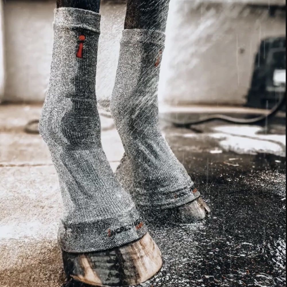 The Incrediwear Equine Circulation Hoof Socks: Grey (Pair) are designed to increase circulation, reduce inflammation, relieve pain, and accelerate recovery. Use Incrediwear Equine Socks immediately following working, training or competing with your horse. Hose the Circulation Hoof Socks and leave on the horse for 45 minutes up to 1 hour. Circulation Hoof Socks provide icing effect for 45 minutes up to 1 hour to decrease swelling when wet.