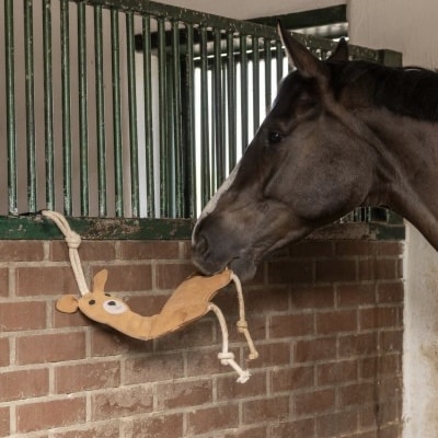 The Kerbl Horse Toy: Lama is a natural fibre-filled horse toy with suede cover is a good distraction for horses in the box or during periods where movement is restricted. It is excellent as a means of keeping foals occupied.