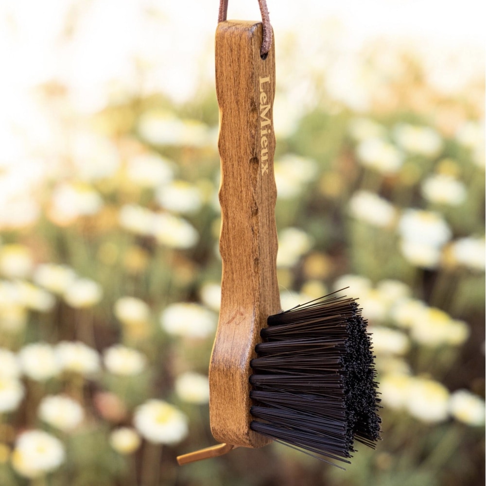 The LeMieux Artisan Hoof Pick: Brown comes with a leather loop for handy hanging and solid sturdy wooden handle with grooves for a comfortable grip, the LeMieux Artisan Hoof Pick is perfect for removing packed mud, stones and ice from your horse’s hoof.