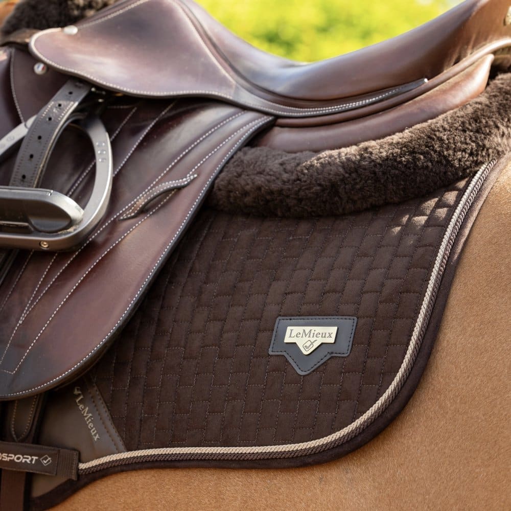 The LeMieux Puissance Close Contact Square: Brown is a new sporty look and two layers of sophisticated cord edging, the Puissance Suede Close Contact Saddle Pad offers the very best of comfort and style.
