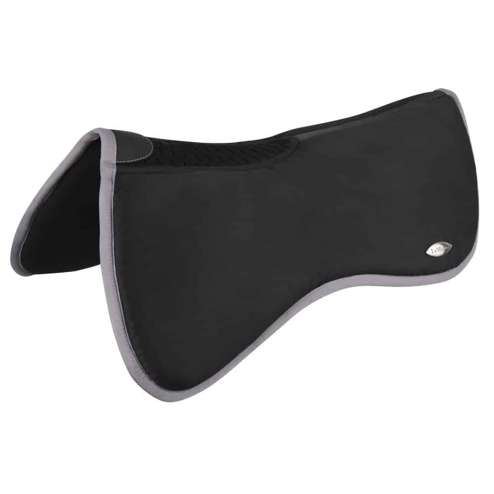 The LeMieux Wither Relief Memory Foam Half Pad: Black is a superb low profile memory foam that supports the saddle and evenly distributes the riders weight and pressure. The panels of the saddle bed into the memory foam half pad which becomes more malleable and compliant as it warms up. This in turn increases stability and reduces unwanted movement and there are no unsightly straps!