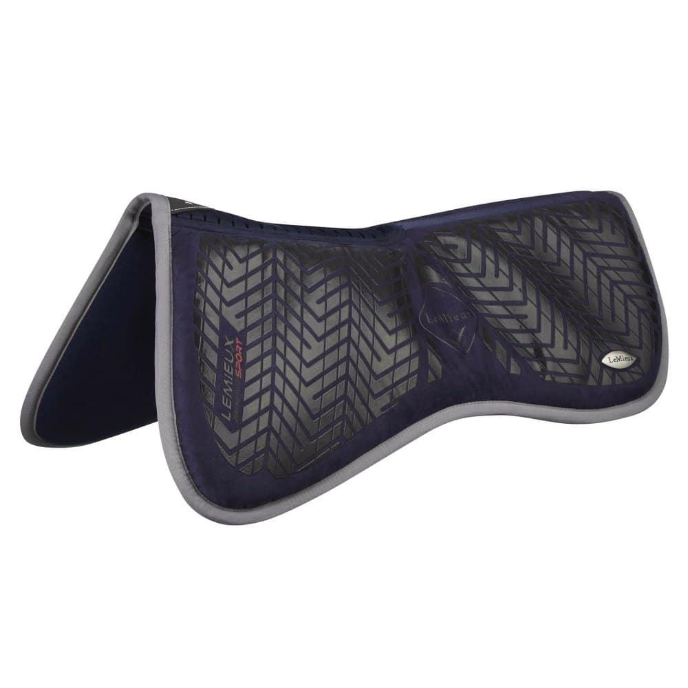 The LeMieux Wither Relief Sports Grip Memory Foam Half Pad: Navy is a superb low profile memory foam that supports the saddle and evenly distributes the riders weight and pressure. The panels of the saddle bed into the memory foam half pad which becomes more malleable and compliant as it warms up. This in turn increases stability and reduces unwanted movement and there are no unsightly straps!