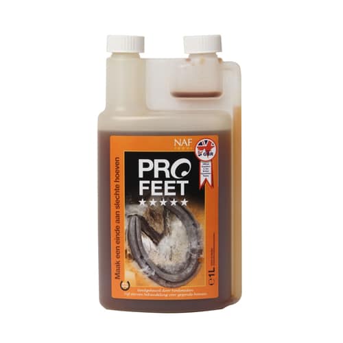 The NAF PROFEET Liquid supplements are unique in that they not only provide nutrients to directly support hoof health, they also provide nutritional support that helps target healthy liver function, which, in turn is fundamental to healthy hoof growth. Biotin is combined with a rich sulphur complex of methionine, lysine and MSM, minerals including calcium and zinc, and a broad spectrum of naturally sourced amino acids and essential fatty acids. Developed by veterinary scientists, with the assistance of leading farriers, PROFEET offers the most concentrated, fast acting, nutritional support for quality hoof growth. The aforementioned nutrients in PROFEET work in synergy with the naturally sourced anti-oxidant ingredients in the formula to provide a hoof supplement that out performs all those that came before.
