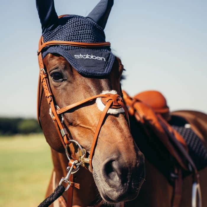 The Stubben 2700 Pro-Jump Mexican Noseaband Bridle: Ebony has been designed with the Stübben team riders, we have developed a snaffle bridle, which suits the horse’s anatomy and offers the necessary precision for the higher classes of show jumping at the same time. Also using the NEW innovative “slide and lock” easy to use system for attaching and changing bitting options!