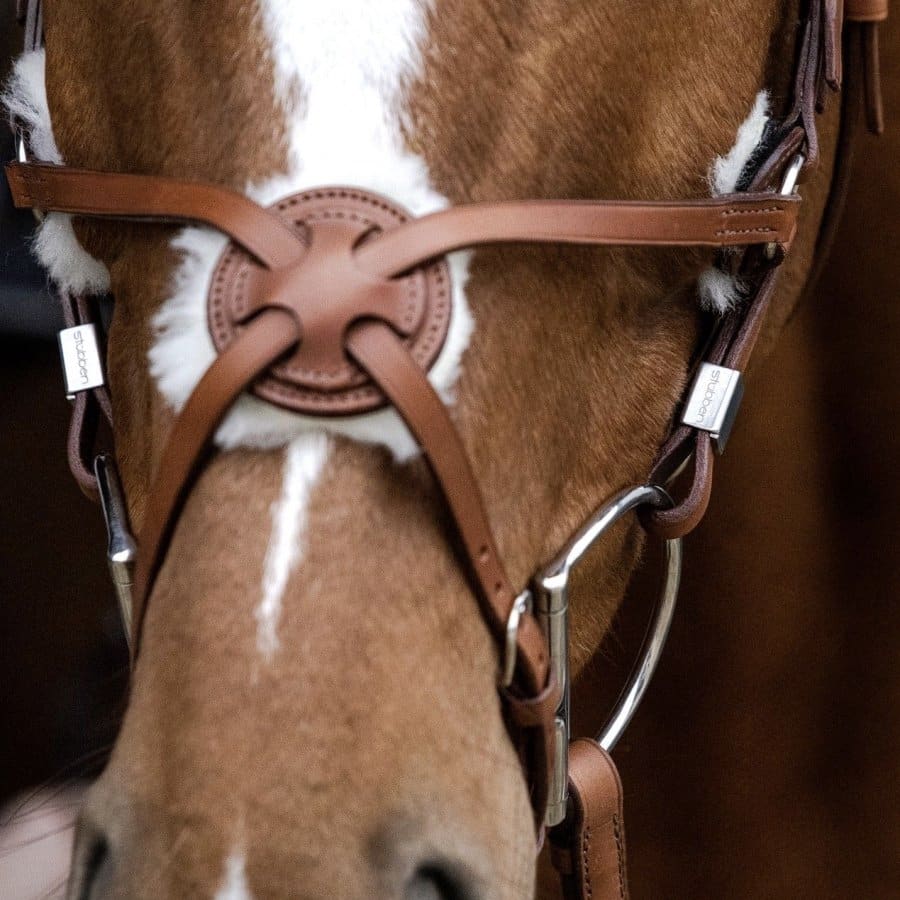 Our revolutionary, exclusive Slide&Lock fastening on the cheek pieces allow for effortless bit changes in no time: simply push up the metal sleeve and the pin releases the leather loop. Once the bit has been changed, push the sleeve back down until it clicks into place.