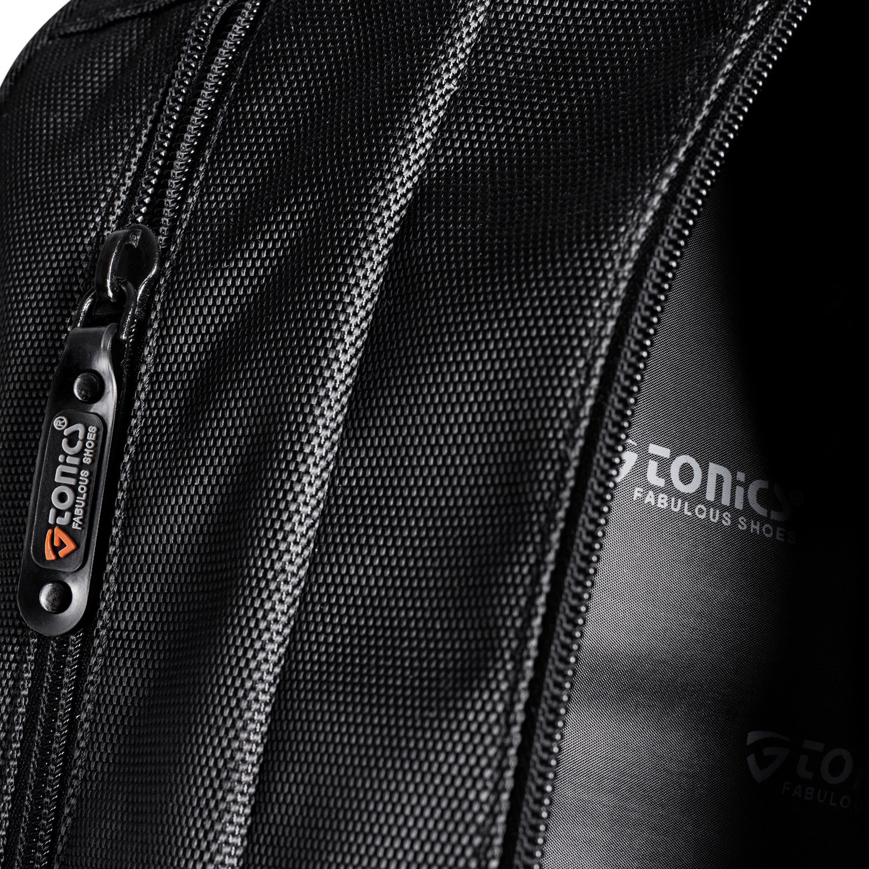 The Tonics Boot Bag is the perfect way to protect your Tonics tall boots with this high-quality boot bag! Made out of premium nylon, this bag provides the best protection for riding boots. It has two separate compartments: every boot has its own space. Mesh inserts at the top ensure good ventilation. The hard bottom and various straps make this bag an ideal option for daily training and for shows.